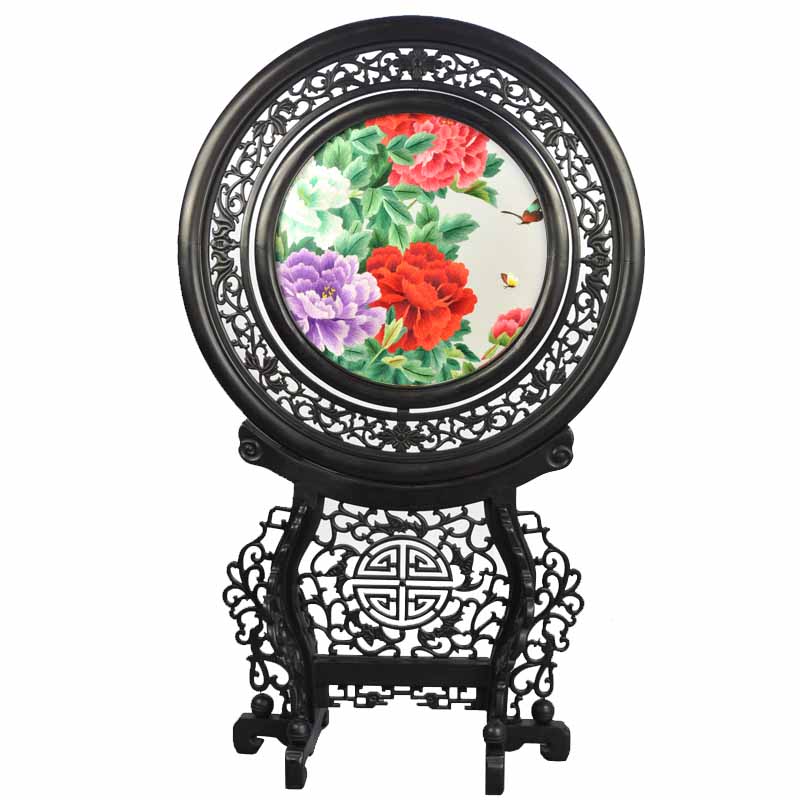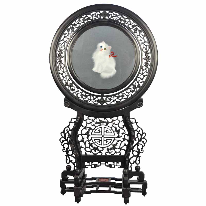 產(chǎn)品名稱:檀木同心圓雕花架(雙面繡) (作品代碼:ST-669) 產(chǎn)品規(guī)格:刺繡圖案尺寸 圓直徑20CM 外框整體尺寸寬32CM,高57CM 產(chǎn)品工藝:蘇州繡娘手工刺繡。繡品可360度旋轉(zhuǎn) 產(chǎn)品材質(zhì):真絲面料+桑蠶絲線+玻璃+紫檀木架 產(chǎn)品包裝:錦盒禮品裝 嬌古出廠價(jià):2800元/件 最小起訂量:1件----廠家直銷,可當(dāng)天發(fā)貨(可混配圖案) 產(chǎn)品描述:【檀木同心圓雕花架】蘇州雙面繡為蘇州繡娘純手工刺繡而成,木框?yàn)槟壳爸袊?guó)蘇州雙面繡最高材質(zhì)紫檀,整體框架花紋雕刻細(xì)膩。圖案有花卉(牡丹,梅花,荷花,蘭花等),花鳥,動(dòng)物(熊貓,老虎,魚等),山水,風(fēng)景,名家字畫等。圖案多達(dá)一百多種,有古色古香的,有現(xiàn)代氣息的,高貴典雅,是贈(zèng)送客人的重要禮品之一。 注:此款為蘇繡雙面繡為高檔蘇繡雙面繡,牡丹題材與蘇繡的結(jié)合,很能代表中國(guó)傳統(tǒng)文化特色。手工刺繡做工精美之外講究整體的搭配與意境,是值的推薦的一款蘇繡禮品。(可根據(jù)需要加企業(yè)LOGO等)。 注:此款另有圓直徑為30CM的刺繡圖案,整體尺寸按同比例放大。